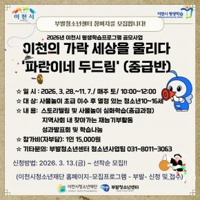 µû¶æÇÑ ¸¶À½°ú »ç¶ûÀ» ³ª´©´Â ÀÌõ½Ãû¼Ò³âÀç´ÜÀÇ ´Ù¾çÇÑ Ã»¼Ò³âȰµ¿ ¹× ºÀ»çȰµ¿ ÇÁ·Î±×·¥À» ¾È³»Çص帳´Ï´Ù.